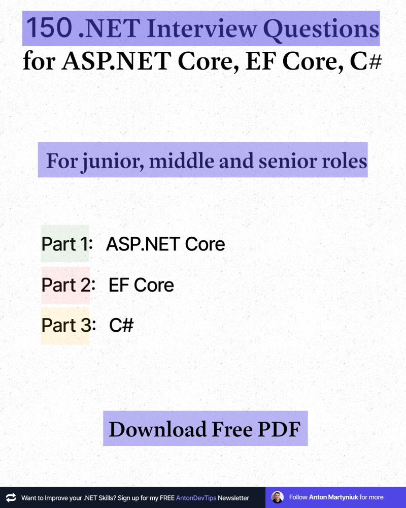 ๐ญ๐ฑ๐ฐ ๐๐๐ฒ๐๐๐ถ๐ผ๐ป๐ ๐ง๐ผ ๐ฃ๐ฟ๐ฒ๐ฝ๐ฎ๐ฟ๐ฒ ๐ณ๐ผ๐ฟ .๐ก๐๐ง ๐๐ป๐๐ฒ๐ฟ๐๐ถ๐ฒ๐ ASP .NET Core, EF Core, C# questions ๐ 1. Explain how routing works in ASP NET Core 2. What is middleware and in what order do they execute? 3. How can you stop othe...
