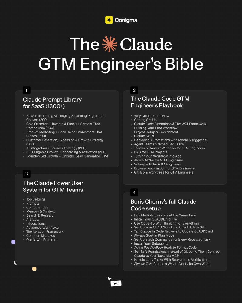 The Claude GTM Engineering Bible is finally finished. It took me 120+ hours to build this across four complete resources. I condensed everything senior GTM engineers actually do with Claude and Claude Code into one place. So you do not have to fig...